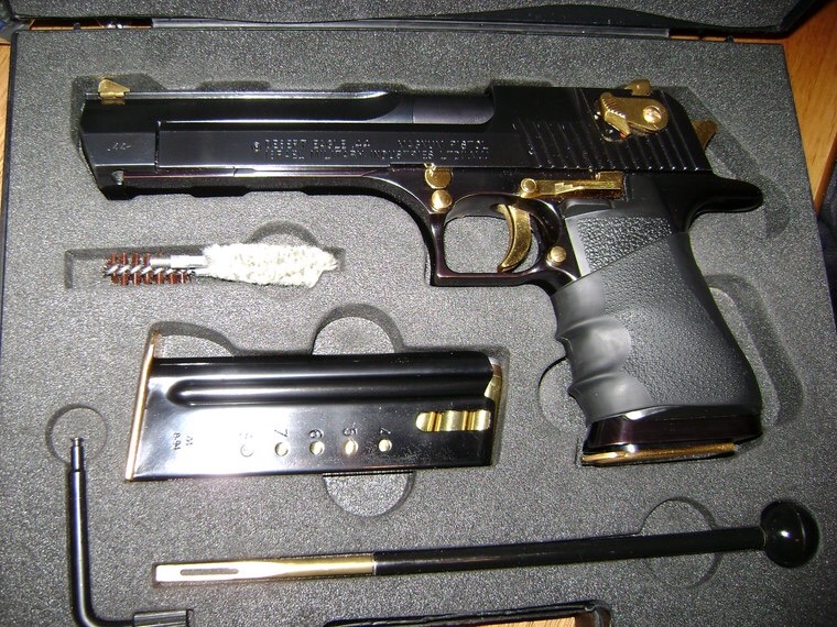 The Mark XIX L6 in 50 AE 44 Magnum and 357 Magnum are about 11 oz. Desert Eagle Black and Gold SKU. Custom finished Desert Eagles such.
